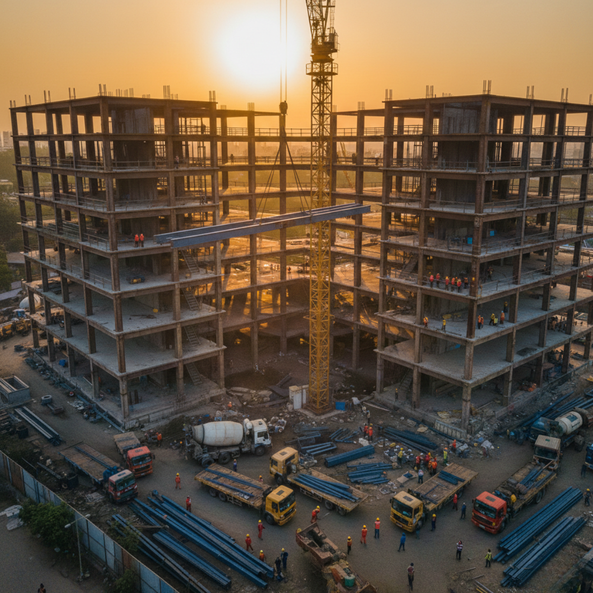 Unlike RCC, which is poured and cured on-site over weeks, steel construction is largely a logistics and assembly exercise. This single distinction has enormous downstream implications for project timelines, labour costs, and quality control.